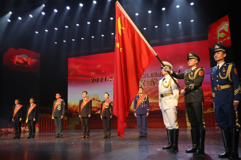2021年度北京市"最美退役军人"发布仪式于6日晚在民族文化宫举行。北京市副市长杨晋柏出席发布仪式,并为李贤宝等6名北京市"最美退役军人"称号获得者颁发证书。