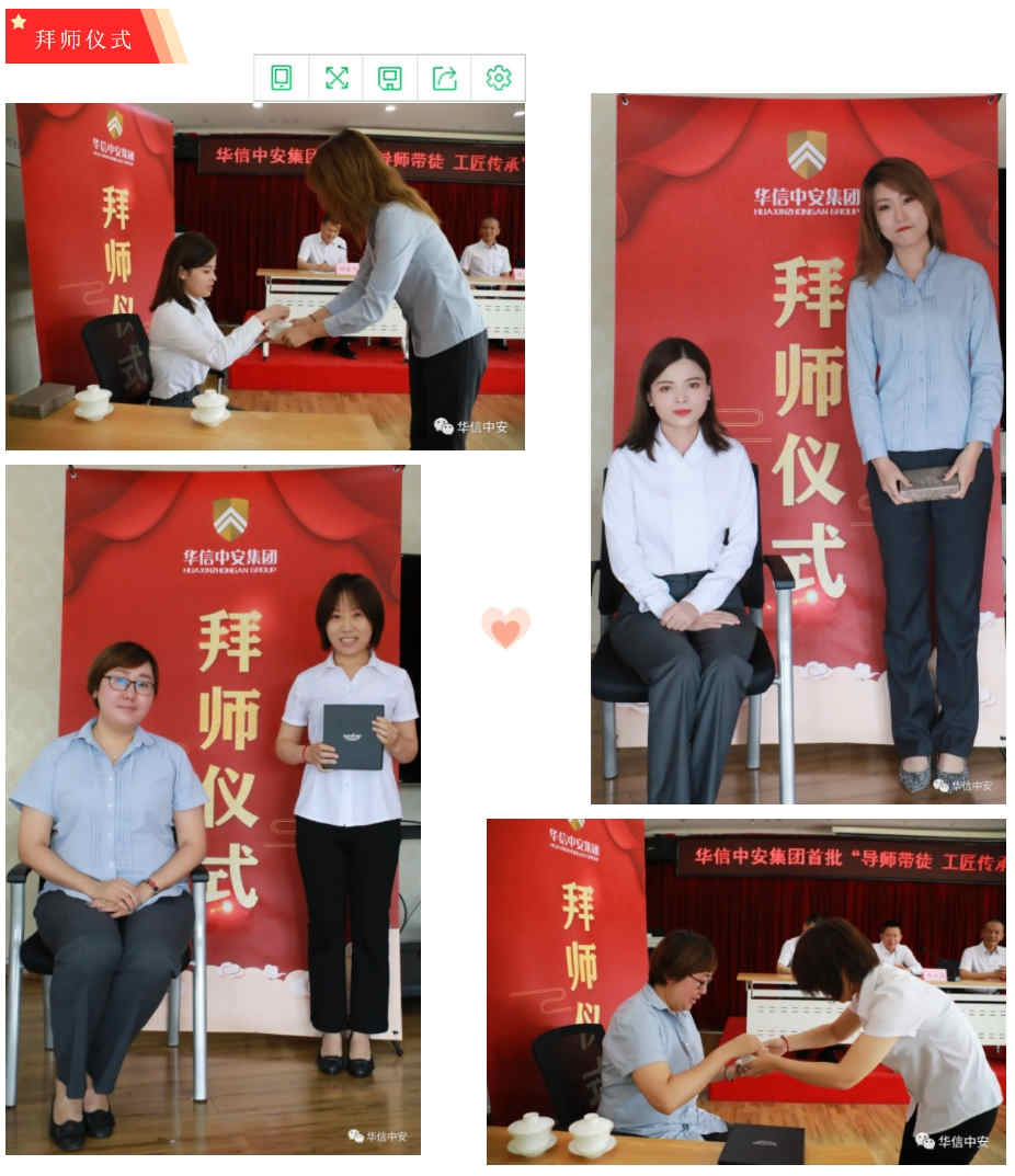 拜师仪式正式开始,师傅表示:"将我所学、尽我所能,毫无保留,传授给徒弟,希望徒弟们好好学习,为公司的发展做出积极贡献"徒弟也向师傅保证:一定努力学习,争分夺秒,把自身掌握的知识转化为工作技能运用到实际工作之中,为集团的发展添砖加瓦" 礼毕,师徒关系正式确立。师徒关系的确立既是一种深厚感情也是一份文化传承,饮其流者怀其源,学其成时念吾师。