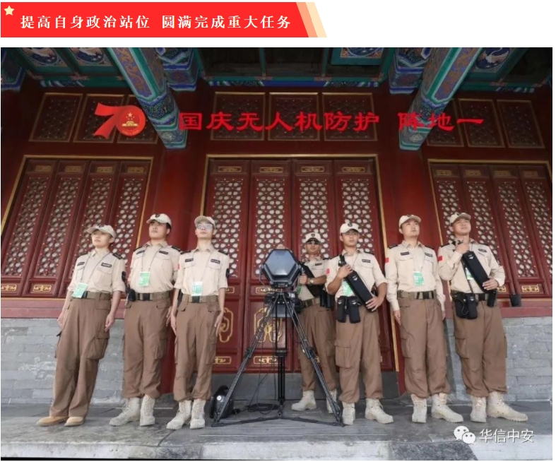 客户单位负责人经常提到,我们之所以选择华信,就是因为你们有党组织、有政工干部,传承了我党思想政治工作的优势,这样的企业政治可靠、值得信赖。为了保障阅兵、庆祝活动核心区低空的绝对安全,2019年4月,由公安部牵头,军队、工信部协同成立无人机联合防控专班,华信中安凭借雄厚的科技沉淀、强大的研发实力、丰富的现场经验、过硬的政治素质、完善的保密体系被选定为国庆70周年阅兵核心区低空防御的重要安保力量。这是一个无尚光荣的使命,这是一个无比艰巨的挑战。为圆满完成党和国家交给的重大任务,面对时间紧、任务重、保障需求特殊等实际情况,乐鱼网页版登录入口成立了以党委挂帅、智能科技公司担纲、保安公司协同的无人机防御工作组,代号"1001"。从人员选拔、背景审查、保密教育、军事训练到装备操作使用、故障排除、突发事件处置,均由党委把关。为加强安全保密工作,党委书记林永强亲自挂帅,担任保密委员会主任,负责保密教育和队员政审,并直接领导无人机技术大队。大队长兼教导员李逢亮在部队服役二十年,拥有本科学历和无人机驾驶《机长证》,航测遥感与测绘中级工程师,退役后长期从事无人机应用领域研究与实战,是全国安保行业的无人机防控专家。经过前期5个多月的实战演练和阅兵期间的战斗值班,华信中安出色地完成了国庆70周年低空安全保障任务,并先后完成了澳门回归祖国20周年庆祝大会会场、北戴河署期安保、总书记赴潮汕地区考察暨深圳经济特区成立40周年庆祝大会、总书记沪苏两地考察等数十项重大政治活动的保障任务,受到公安机关高度赞扬,国庆70周年活动领导小组、公安部、澳门特区治安警察局、北戴河安保指挥部等单位多次通令表彰,并送来锦旗和感谢信。