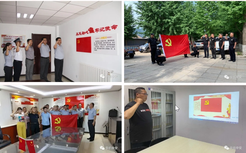 中国共产党于危难中诞生,在磨难中成长,历尽沧桑,饱经风雨,彩笔绘就河山壮境,妙手谱写历史雄歌,值此建党99周年之际,华信中安全体党员用实际行动表达了对党和国家的忠诚热爱,以及信党爱党跟党走的决心!