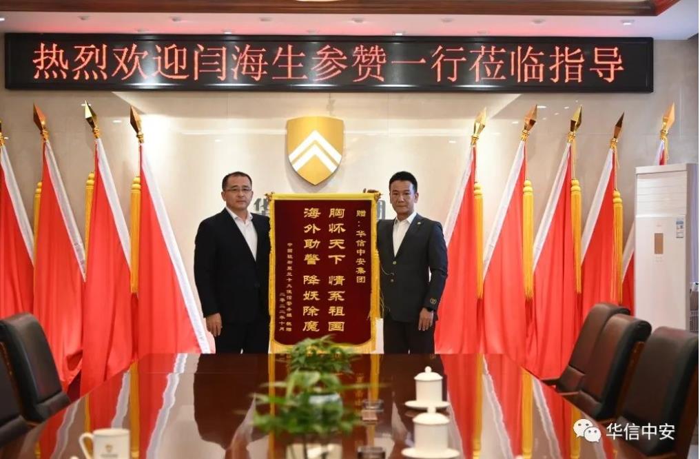 顶 胸怀天下情系祖国 海外助警降妖除魔——中国驻斯里兰卡大使馆闫海生参赞向华信中安赠送锦旗