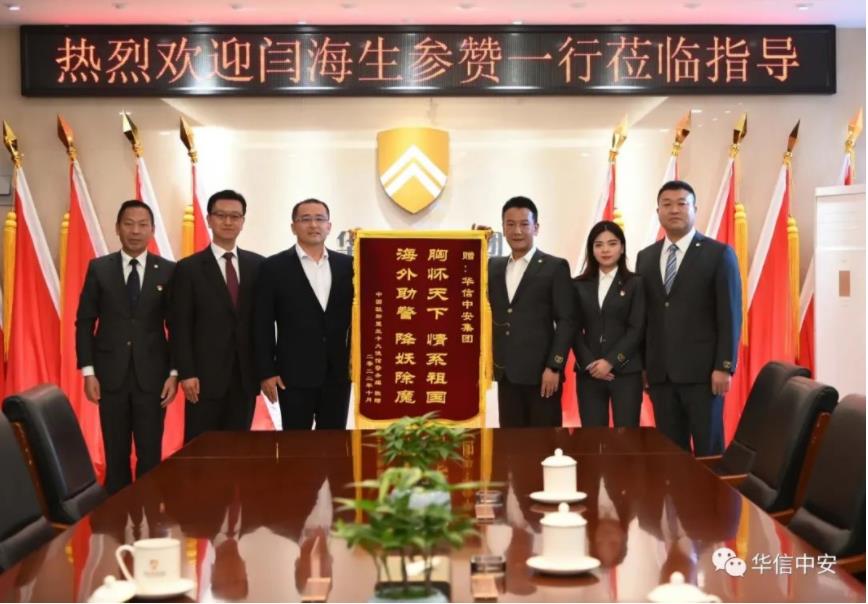 11月12日,中国驻斯里兰卡大使馆闫海生参赞一行将一面绣有“胸怀天下情系祖国 海外助警降妖除魔”的锦旗赠与乐鱼网页版登录入口殷卫宏董事长,表达对华信中安斯里兰卡国际公司浓厚的家国情怀和为国奉献担当精神的高度赞誉。集团保安服务运营与管理中心总监、华信中安(北京)保安服务有限公司总经理邢鹏;集团国际业务运营与管理中心总政委李先喜、副政委刘艺桐共同参加授旗仪式。