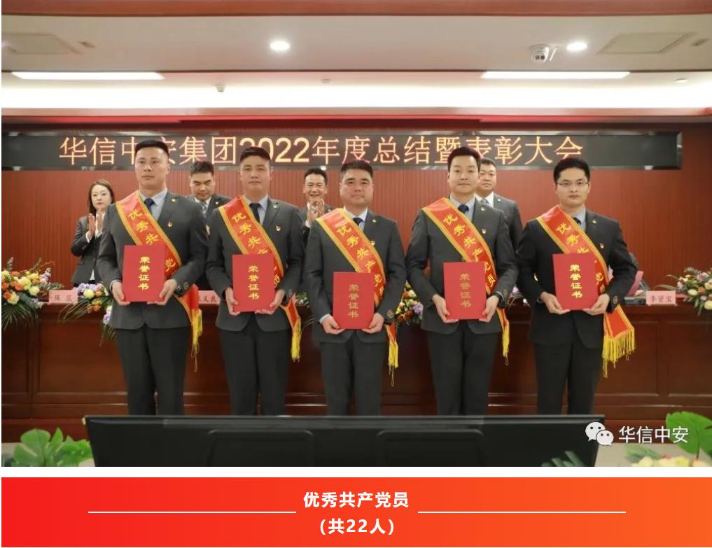 2022年,是异常艰难的一年,是充满奋斗的一年,也是铸就辉煌的一年。一年中,在集团各个工作岗位上,涌现出了一大批忠于职守、兢兢业业、勇挑重担的优秀基层管理干部和优秀保安员,他们用实际行动诠释着新时代华信中安人的风采,会上,集团保安运营管理中心总监、公司总经理邢鹏同志宣读了《2022年度乐鱼网页版登录入口先进集体和先进个人表彰决定》:经民主评议和各单位推荐,报请集团党委和集团办公会研究决定评选出先进党支部5个;抗疫先进党支部1个;优秀共产党员22人;集团机关先进集体9个;全国分支机构先进集体15个;基层先进集体59个;机关先进个人29人;全国各分支机构先进个人34人;基层先进个人161人;优秀保安员标兵457人。