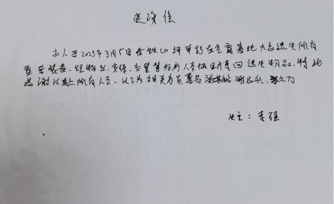 3月5日早上9点,铁山坪露营基地内,游客李先生找到我司保安员方万久帮忙找回丢失的露营装备。看到游客十分着急,项目负责人潘其铭立即开始安排调取监控,经仔细核查后发现其露营装备被拾荒人员收走。于是,马上安排项目安保人员巡查,最终成功帮助李先生找回了丢失的物品。