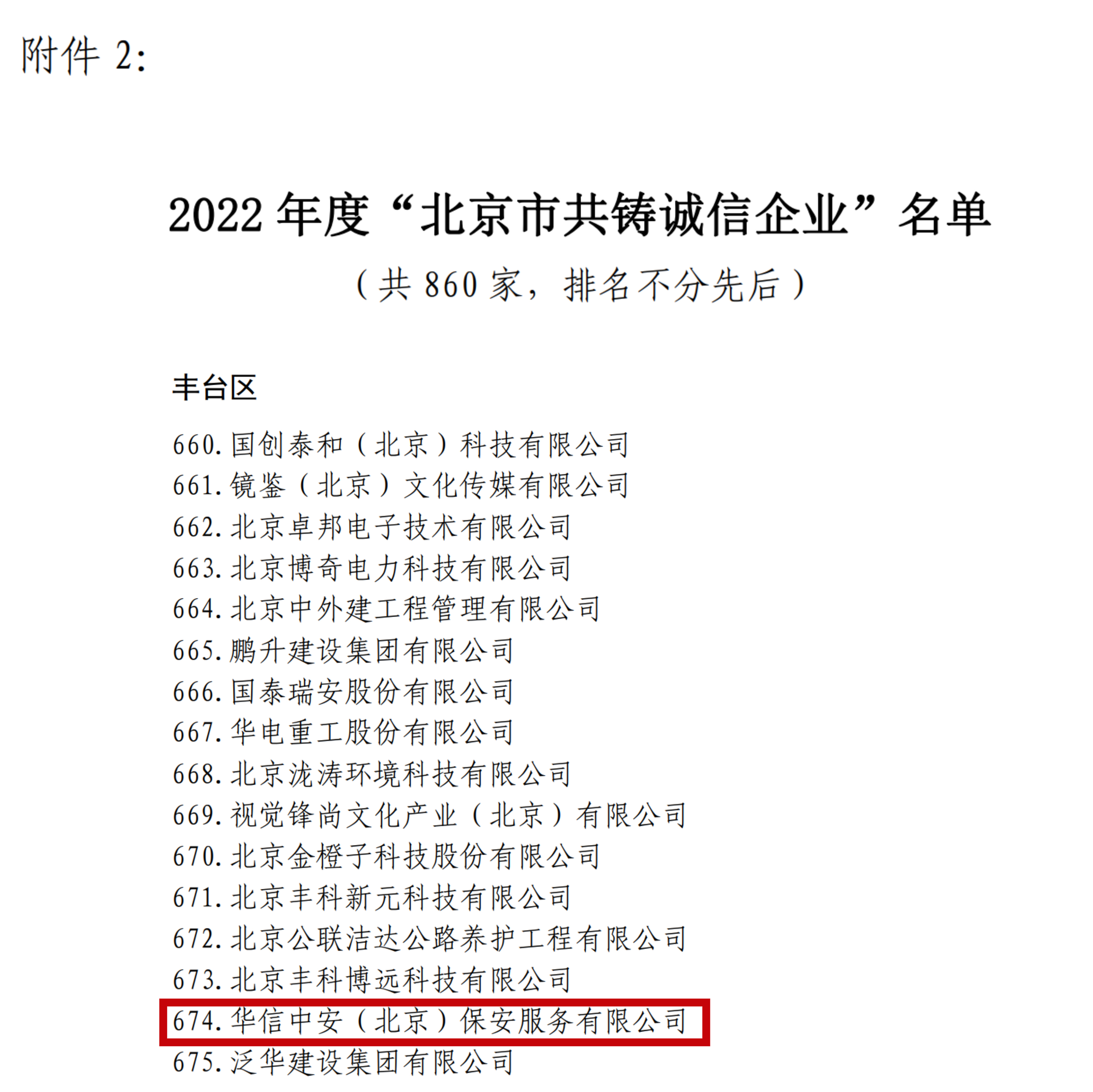 “百业万企”共铸诚信文明北京活动自2022年启动,旨在充分展示首都诚信建设成果,激励各行各业全面落实社会信用体系建设各项任务,积极构建诚信文明北京。经过资格查验、信用审查、专家评议、部门审核、社会公示等一系列程序,公司凭借信用制度健全、经营管理规范、社会责任落实、公众评价优良等优势,成功评为“北京市共铸诚信企业”,成为北京市百万企业中具有示范作用的先进典型。
